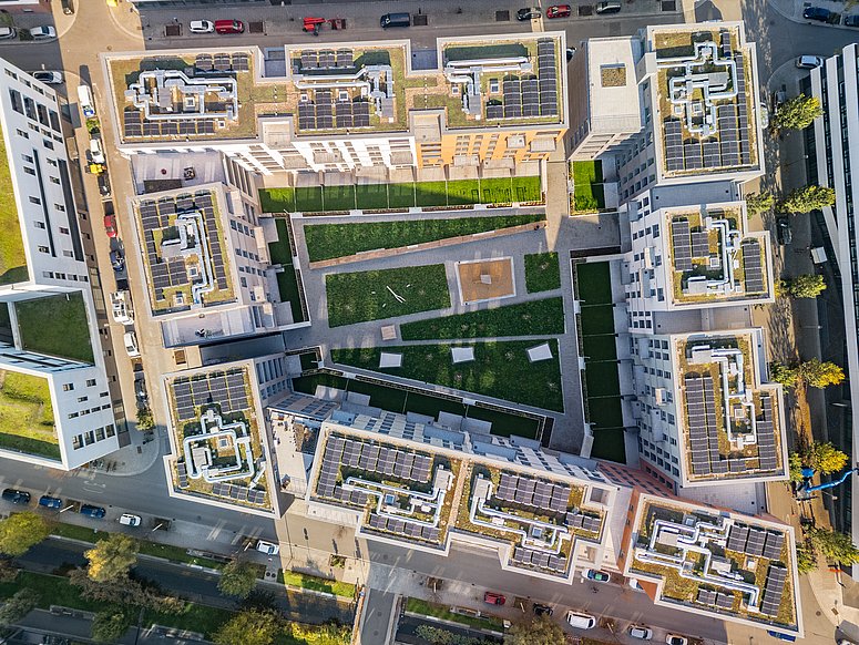 - faszinierende Blickbeziehungen auf die Gebäudearchitektur des eigenen Quartiers und auf den Innenhof