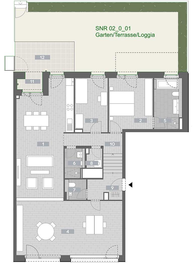 - großzügige Loggia angrenzend an eigenen Garten und Terrasse