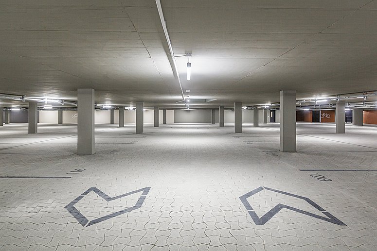 - Geschlossene Tiefgarage mit komfortablen Stellplätzen