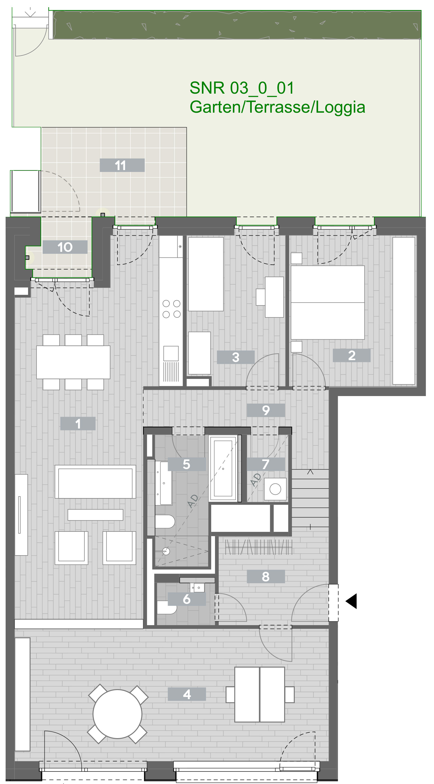 - großzügige Loggia angrenzend an eigenen Garten und Terrasse