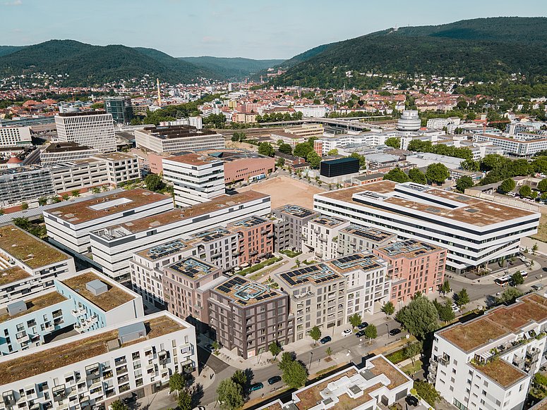 Forschung und Wissenschaft sind in der Bahnstadt ebenso zuhause wie Wirtschaft, Kultur und Handel. Belebte Plätze, wie die Schwetzinger Terrasse und die Promenade, bieten hohe Aufenthaltsqualität und machen die Bahnstadt zu einem geselligen Treffpunkt für Nachbarn und Freunde.